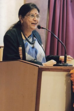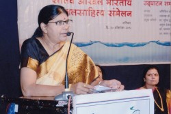पुणे येथील पाणी परिषदेत बोलतांना अरुणा सबाने व्यासपीठावर मुकुंदराव किर्लोस्कर. वालावलकर, Chief Engineer कुलकर्णी